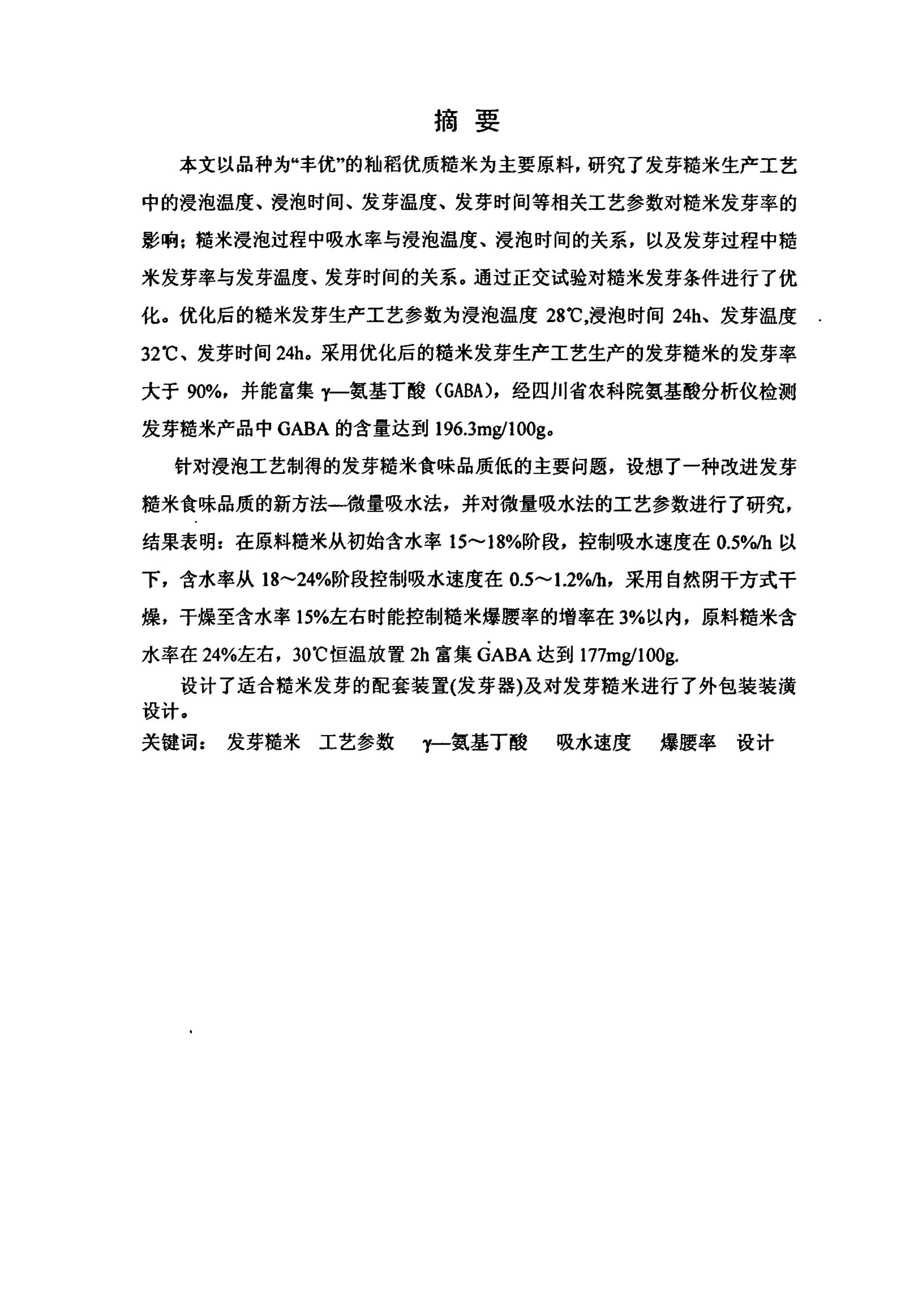 发芽糙米工艺研究