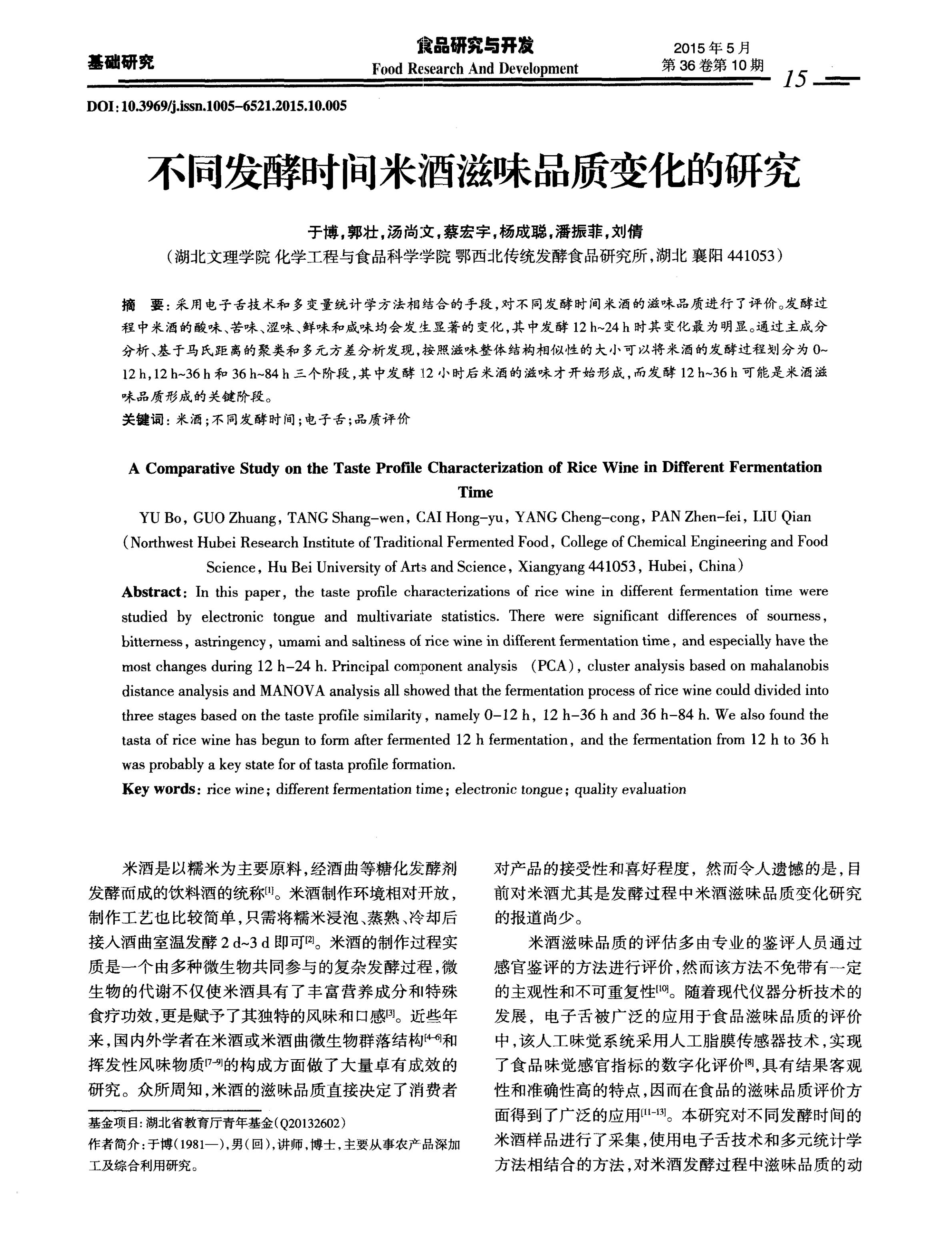 不同发酵时间米酒滋味品质变化的研究