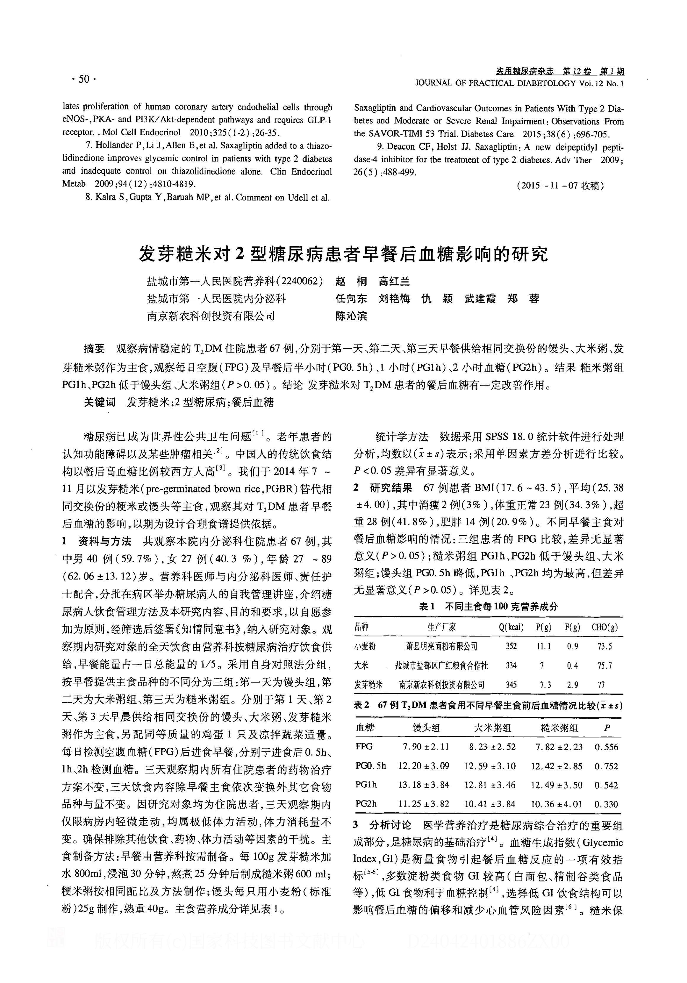 发芽糙米对2型糖尿病患者早餐后血糖的影响的研究