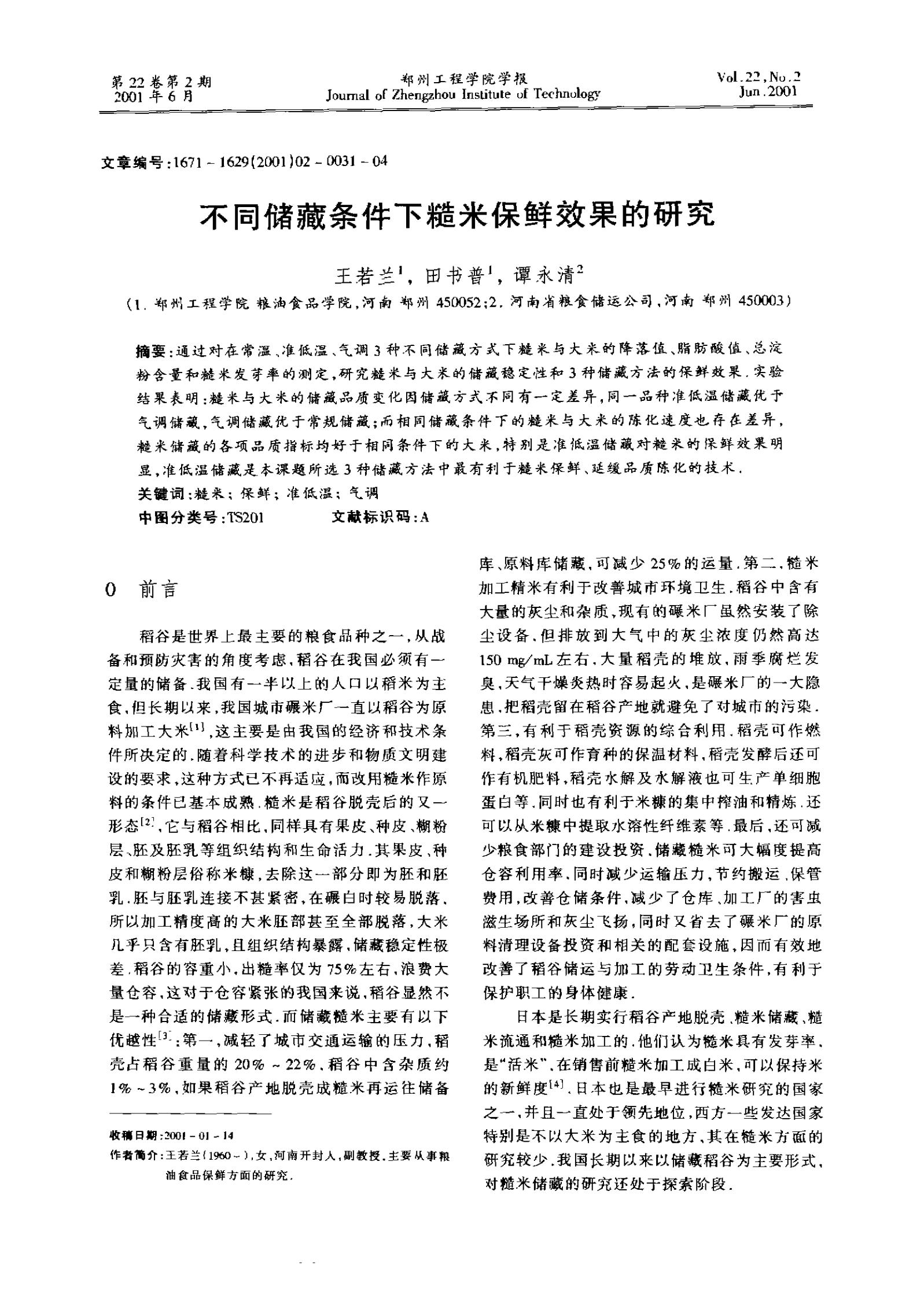 不同储藏条件下糙米保鲜效果的研究