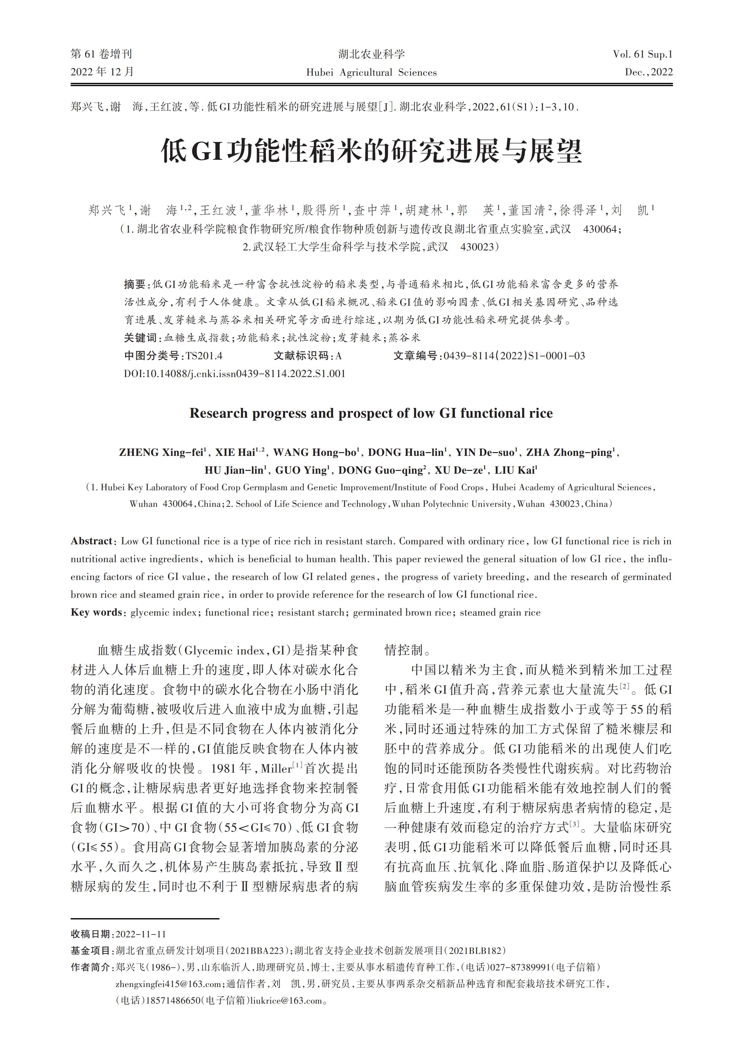 低GI功能性稻米的研究进展与展望